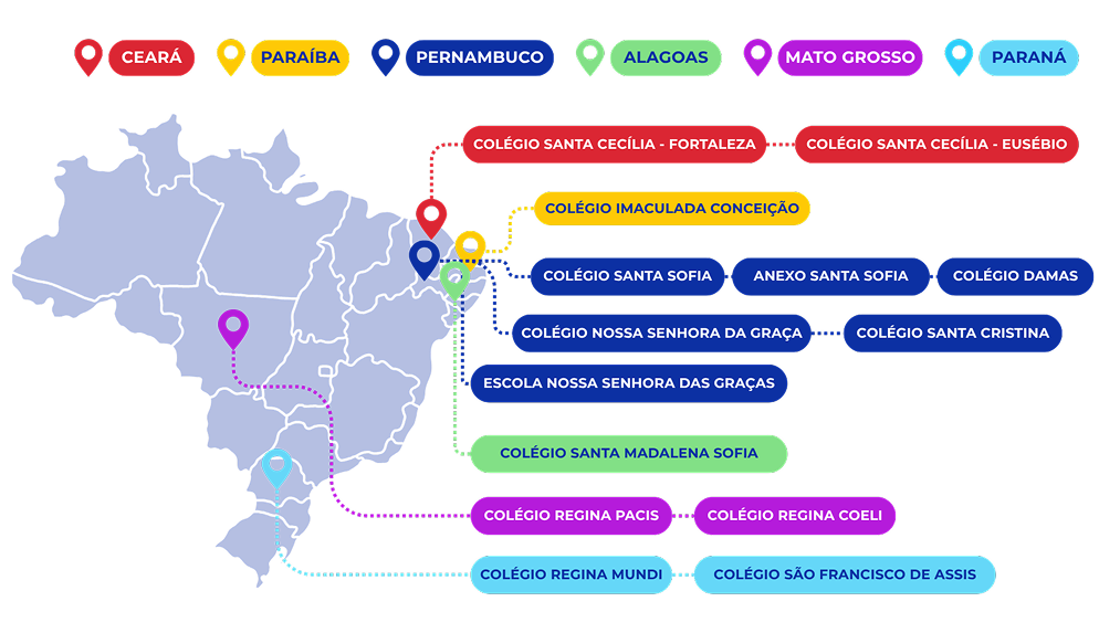 Com 14 escolas, abraçamos o propósito de educar para inspirar pessoas e transformar o mundo há gerações. Impulsionados pelo Carisma das Religiosas da Instrução Cristã, instituto bicentenário, exercemos com responsabilidade e afeto a missão de formar a pessoa humana com base nos valores cristãos, éticos e acadêmicos, de maneira participativa e comprometida, encarnando a face atual do Cristo Educador para construir uma sociedade sustentável.